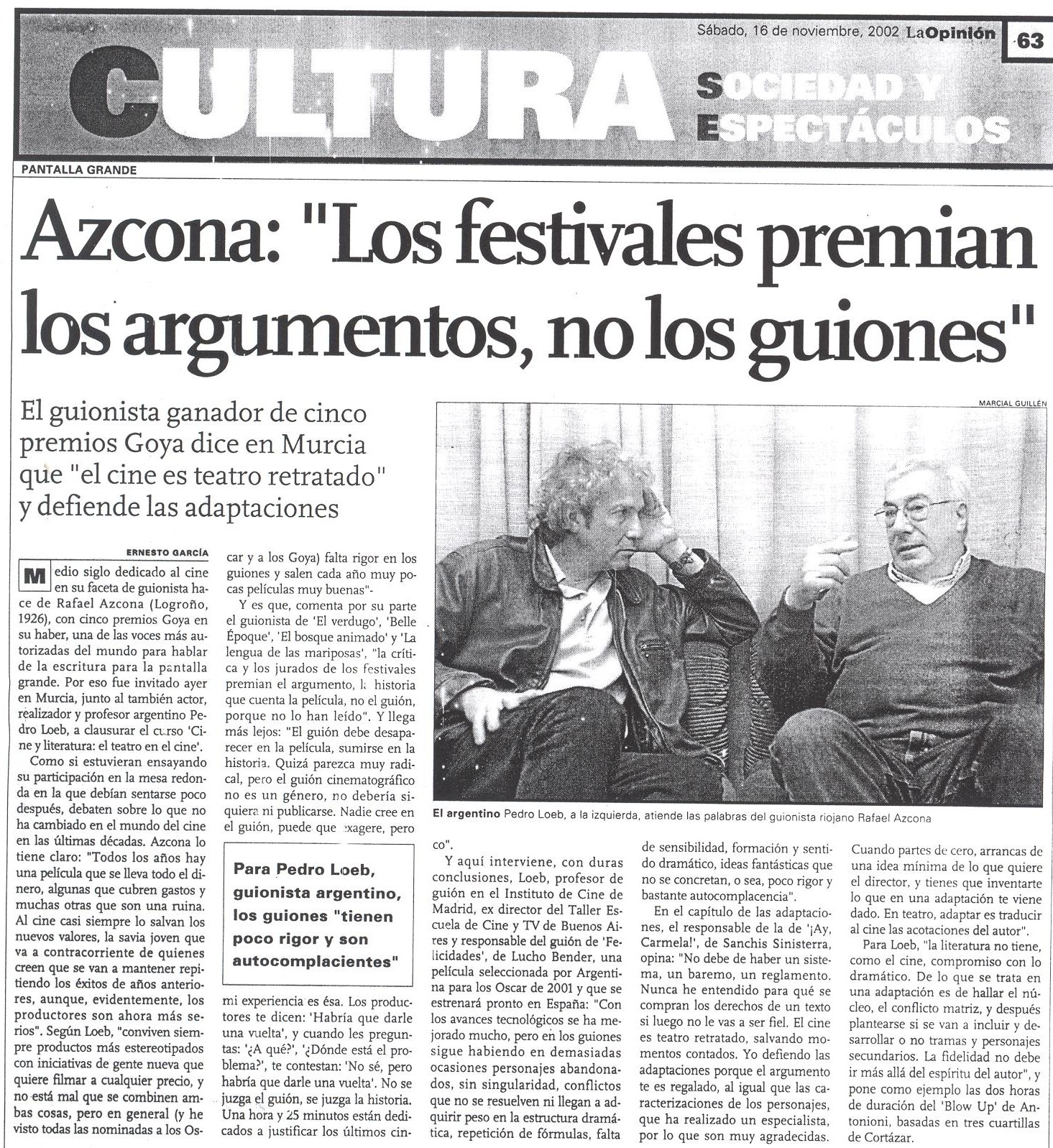 Director académico: José María Pozuelo Yvancos / Directores: Alberto Sánchez Jordán y Juan Domingo Vera Méndez / Coordinadores: Manuel Nicolás Meseguer y Nieves Pérez Abad / Colaboradores: Irene Aniorte Cánovas, Raúl Caruana Denia, Antonio Vicente Frey Sánchez, Ignacio Hernández Ibáñez, Sofía López Briones Guil y María Luján Ortega / Organizadores: Asociación de Cine y Teatro Universitario (CYTU), Facultad de Letras de la Universidad de Murcia y Obras Sociales de la Caja de Ahorros del Mediterráneo / Patrocinadores: Biblioteca Virtual Miguel de Cervantes de la Universidad de Alicante, Concejalía de Juventud del Excmo. Ayuntamiento de Cartagena, Concejalía de Juventud y Vivienda del Excmo. Ayuntamiento de Murcia, Consejo de la Juventud de la Región de Murcia, Decanato de la Facultad de Letras de la Universidad de Murcia, Dirección de Alumnos de la Universidad de Murcia, Dirección General de Juventud de la Comunidad Autónoma de la Región de Murcia, Obras Sociales de la Caja de Ahorros del Mediterráneo, Vicerrectorado de Estudiantes y Empleo de la Universidad de Murcia y Vicerrectorado de Estudios y Postgrado de la Universidad de Murcia. |